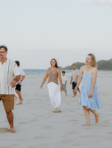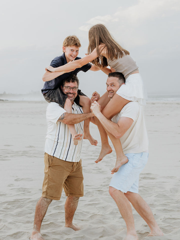 This Byron Bay family photography session celebrated a long awaited reunion, the first time this family had all been together in years. Set against the soft coastal tones of Byron Bay, the afternoon was filled with laughter, piggybacks, and playful tugs of war. The cousins ran wild, parents shared beachside hugs, and every moment captured the joy of genuine connection and togetherness.